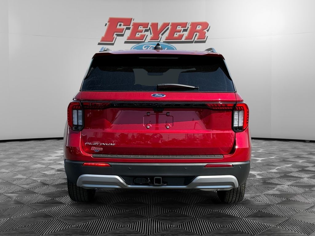 Rapid Red Metallic Tinted Clearcoat 2026 Ford Explorer Platinum RWD 10-Speed Automatic 2.3L EcoBoost I-4 Pre-Collision Assist with Automatic Emergency Braking w/Pedestrian Detection, Adaptive Cruise Control/Lane Centering System, BlueCruise, Bluetooth (Handsfree) Phone, Ford Digital Experience, Google Assistant, Google Maps, Google Play, Waze Navigation Integration, Apple CarPlay® and Android AutoTM Wireless Compatibility, Alexa Built-In, SiriusXM Satellite Radio, Voice Controlled iPod/Mp3 input/USB Port, Ford CoPilot 360, Heated/Cooled Front Seats, Heated Rear Seats, Keyless Entry Keypad, 911 Assist, 360-Degree Camera, Lane Keeping System, Automatic High-Beam Headlamps, FordPass Connect w/5G Modem, Wi-Fi Hotspot, 2nd Row Captain's Chairs, Wireless Charging Pad, Blind Spot Monitoring System (BLIS), Rain-Sensing Windshield Wipers, Rear View Camera, Explorer Platinum, ActiveX Trimmed Captain's Chairs, Auto High-beam Headlights, Equipment Group 600A Standard Package, Front dual zone A/C, Garage door transmitter, Heated steering wheel, Knee airbag, Memory seat, Navigation System, Panoramic Fixed Glass Roof with Power Shade, Power Liftgate, Radio: B&O Sound System by Bang & Olufsen with HD, Rain sensing wipers, SecuriCode Keyless Entry Keypad, Wheels: 20" Luster Nickel-Painted Aluminum.