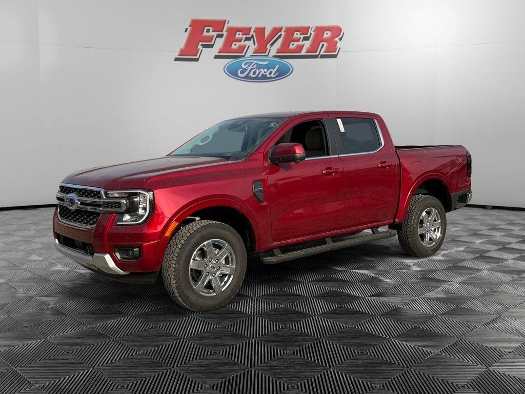 Ruby Red Metallic Tinted Clearcoat 2026 Ford Ranger Lariat 4WD 10-Speed Automatic EcoBoost 2.3L I4 GTDi DOHC Turbocharged VCT Pre-Collision Assist with Automatic Emergency Braking w/Pedestrian Detection, Adaptive Cruise Control/Lane Centering System, SYNC 911 Assist w/Vehicle Health Report, SYNC Voice Activated Communications, Bluetooth (Handsfree) Phone, Waze Navigation Integration, Apple CarPlay® and Android AutoTM Wireless Compatibility, Alexa Built-In, SiriusXM Satellite Radio, Voice Controlled iPod/Mp3 input/USB port, Ford CoPilot 360, Terrain Management System, 911 Assist, 360-Degree Camera, Lane Keeping System, Automatic High-Beam Headlamps, FordPass Connect w/5G Modem, Wi-Fi Hotspot, Blind Spot Information System (BLIS), Rain-Sensing Windshield Wipers, Rear View Camera, Ranger Lariat, 4WD, Body Color Painted Front Fascia, Chrome Accent Package, Chrome Center Bar and Grille Surround, Chrome Rear Bumper, Convenience Package, Front dual zone A/C, Heated steering wheel, LED Bed Lighting, Navigation system: Connected Navigation, Painted Body-Color Wheel Lip Molding, Pro Power Onboard - 400W, Wheels: 18" Chrome-Like PVD, Wireless Charging Pad.