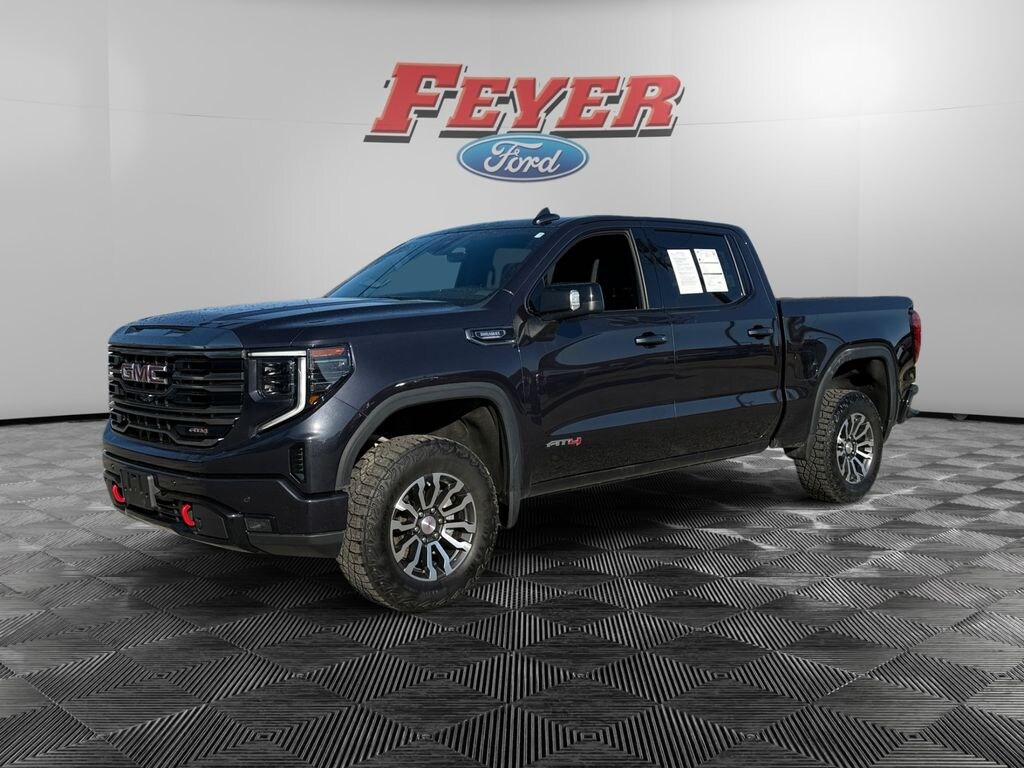 Recent Arrival! CARFAX One-Owner. Clean CARFAX. Titanium Rush Metallic 2023 GMC Sierra 1500 AT4 3.0L I6 10-Speed Automatic Ford Blue Advantage Blue Certified w/3-month/4,000 mile Comprehensive Limited Warranty, Spray-In Bedliner, Pre-Collision Assist with Automatic Emergency Braking w/Pedestrian Detection, Adaptive Cruise Control/Lane Centering System, Bluetooth (Handsfree) Phone, Waze Navigation Integration, Apple CarPlay® and Android AutoTM Wireless Compatibility, SiriusXM Satellite Radio, Voice Controlled iPod/Mp3 input/USB port, Heated/Cooled Front Seats, Heated Rear Seats, Alloy Wheels, Anti-Lock Brakes, Bedliner, Bluetooth, Cruise Control, Fold-Flat Seats, Heated Seats, Keyless Entry, Leather Seats, Moonroof, Navigation, Power Door Locks, Power Mirrors, Power Windows, Power Driver's Seat, Power Seats, Power Sliding Rear Window, Rear Window Defroster, Satellite Radio, Side Airbags, Tinted Glass, Tilt Wheel, 1-OWNER-CLEAN CARFAX, 360-Degree Camera, Lane Keeping System, Automatic High-Beam Headlamps, Wi-Fi Hotspot, Blind Spot Information System (BLIS), Rain-Sensing Windshield Wipers, Rear View Camera, Heads up display (HUD), AT4, Trailering Package, Tow Package, 10-Speed Automatic, 4WD, Jet Black With Kalahari Accents Leather, 10-Way Power Driver Seat Adjuster w/Lumbar, 10-Way Power Passenger Seat Adjuster w/Lumbar, 120-Volt Bed Mounted Power Outlet, 120-Volt Instrument Panel Power Outlet, 2 Charge/Data USB Ports Inside Center Console, 2 Type-C Charge-Only Rear USB Ports, 2 USB Ports, 220 Amp Alternator, 3.23 Rear Axle Ratio, Adaptive Cruise Control, Alloy wheels, Apple CarPlay/Android Auto, AT4 Preferred Package, Auto High-beam Headlights, Auto-dimming Rear-View mirror, Auto-Locking Rear Differential, Automatic Emergency Braking, Bed View Camera, Black Chrome Header & Grille Insert Bars, Block heater, Color-Keyed Carpeting Floor Covering, Compass, Deep-Tinted Glass, Delay-off headlights, Driver Memory, Electric Rear-Window Defogger, Electrical Steering Column Lock, Engine Block Heater, Floor-Mounted Center Console, Following Distance Indicator, Forward Collision Alert, Front Bucket Seats, Front Center Armrest, Front fog lights, Front Pedestrian Braking, Front Prem Floor Liners w/Removable Carpet Insert, Front Rainsensing Wipers, Fully automatic headlights, GMC Connected Access Capable, HD Surround Vision, Heated 2nd Row Outboard Seats, Heated door mirrors, Heated Driver & Front Outboard Passenger Seating, Heated front seats, Heated rear seats, Heated steering wheel, Heavy-Duty Air Filter, Hill Descent Control, Hitch Guidance, Hitch Guidance w/Hitch View, Illuminated entry, In-Vehicle Trailering App, Integrated Trailer Brake Controller, IntelliBeam Automatic High Beam On/Off, Keyless Open & Start, Lane Keep Assist w/Lane Departure Warning, LED Cargo Area Lighting, Memory seat, Multicolor 15" Diagonal Head-Up Display, Navigation System, Off-Road Suspension, OnStar & GMC Connected Services Capable, Outside temperature display, Panic alarm, Perforated Front Leather Seat Trim, Perimeter Lighting, Power Door Locks, Power driver seat, Power Front Passenger Windows w/Express Up/Down, Power Front Windows w/Driver Express Up/Down, Power passenger seat, Power Rake & Telescoping Steering Column, Power Rear Windows w/Express Down, Power Sliding Rear Window w/Rear Defogger, Power steering, Power Sunroof, Power windows, Preferred Equipment Group 4SB, Premium audio system: GMC Infotainment System, Premium Bose 7-Speaker Sound System, Push Button Start, Radio: Premium GMC Infotainment Audio System, Rain sensing wipers, Rear Camera Mirror, Rear Cross Traffic Braking, Rear Pedestrian Detection, Rear Prem Floor Liners w/Removable Carpet Insert, Rear Wheelhouse Liners, Rear window defroster, Red Recovery Hooks, Remote keyless entry, Remote Vehicle Starter System, Security system, SiriusXM w/360L, Split folding rear seat, Spray-On Pickup Bed Liner w/AT4 Logo, Steering Wheel Audio Controls, Technology Package, Theft Deterrent System (Unauthoriz
